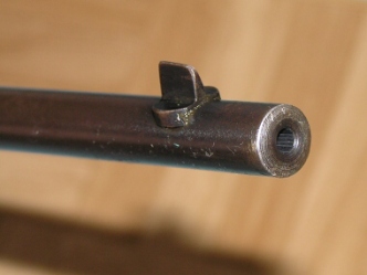 CZ 236 varianta značená malým znakem České zbrojovky. Výrobní číslo 32 402, napínací páka není plná, pažba je uchycena vpředu na boku jedním průchozím šroubem. Na obrázku je pojistka v pozici zajištěno.